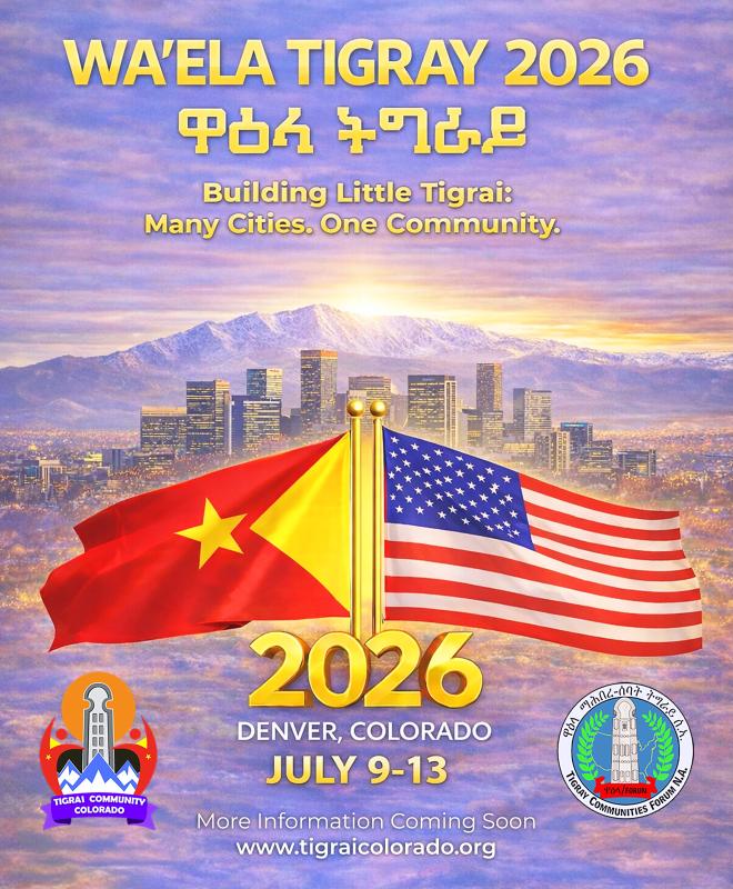 Join us for an unforgettable weekend of culture, community, and purpose at Wa’Ela Tigray 2026, proudly hosted by the Tigrai Community of Colorado (TCC). From July 9–13, 2026, we invite you to gather with the Tigrayan community from across the country for a powerful and inspiring experience.