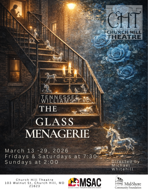 Step into the shimmering world of The Glass Menagerie, Tennessee Williams’ haunting and beautiful memory play that has captivated audiences for generations. This deeply moving story, rich with longing, fragile dreams, and unforgettable characters, reflects the heart-tugging tension between hope and reality—perfectly resonant for anyone who’s ever chased big dreams while holding tight to family ties. As the Wingfield family navigates love, loss, and the tug of the past, you’ll be drawn into a world as delicate and stunning as the glass menagerie itself. Join us at Church Hill Theatre for an evening of poetic drama and emotional depth that will stay with you long after the curtain falls. Don’t miss this regional favorite!