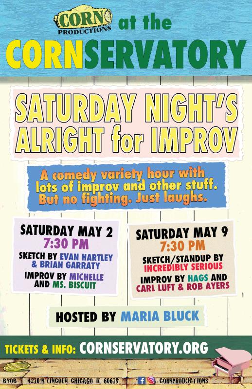 Saturday Night's Alright for Improv and Corn is the best place to see it! Two Saturdays, two amazing line-ups, one great host.