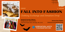 Join Operation ARTS Foundation for our upcoming “Fall into Fashion Exchange” on Sunday, September 28th. Our event is designed to reduce waste and support those in need. Attendees are encouraged to bring unwanted clothing for Fall, including Halloween costumes, workwear and beyond, to exchange for new pieces you will love. Any remaining items will be donated to local homeless shelters, ensuring nothing goes to waste. Our clothing swap event will be held at the Howard County Library’s Elkridge Branch, located at 6540 Washington Blvd, Elkridge, MD 21075, in the Belmont Room. This event will be from 1:00 PM to 4:30 PM, with setup taking place from 1:00 PM to 2:00 PM. Light refreshments will be provided while we wait for everyone to arrive. The clothing swapping will take place from 2:00 PM to 4:30 PM, so early arrival is encouraged for the best selection. You are welcome to arrive later but the event will end promptly at 430, so please come by 4 at the latest. Admission and parking are free and open to the public. By promoting giving parties in our community, we help create sustainable fashion initiatives where participants refresh their wardrobe and “no fashion goes to waste.” Please RSVP so we know how many attendees to expect and we look forward to seeing you soon!