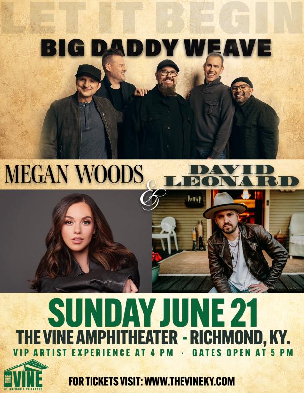 The LET IT BEGIN Tour featuring Big Daddy Weave, Megan Woods, and David Leonard! This will be an unforgettable night of inspiration and joy featuring your favorite songs from Big Daddy Weave, including their latest hits; Let It Begin, Heaven Changes Everything, God Is In This Story, and I’ve Just Seen Too Much alongside favorites Redeemed, My Story, The Lion and The Lamb, and more. Megan Woods (The Truth, I Believe You`) and David Leonard (Keep The Light On, Light A Fire, Good Lord) complete the line-up for this exciting event. Get your tickets for this one-of-a-kind concert experience today!