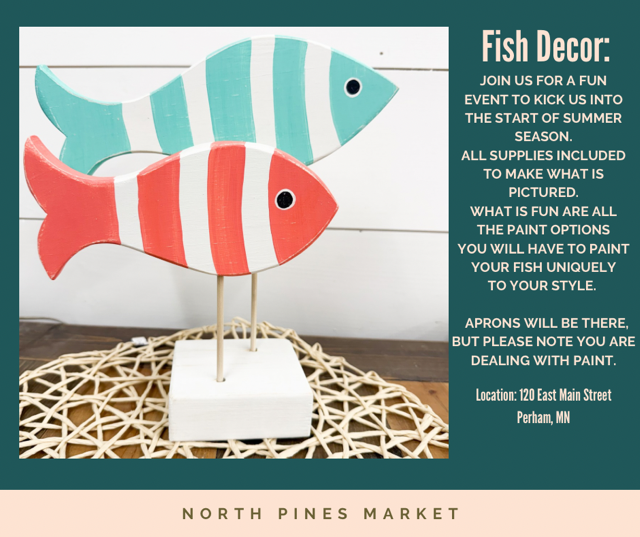 Join us for a fun event to kick us into the start of summer season. All supplies included to make a cute wood fish decor piece.