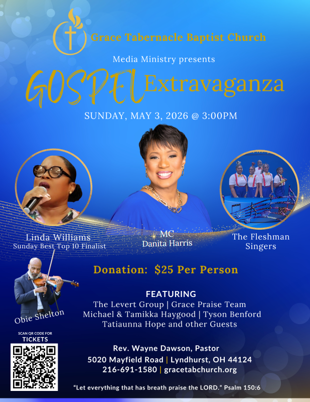Join Grace Tabernacle Baptist Church Media Ministry for an afternoon of high-energy worship and praise! Featuring an incredible lineup of talent, this event is more than a concert—it’s a mission.