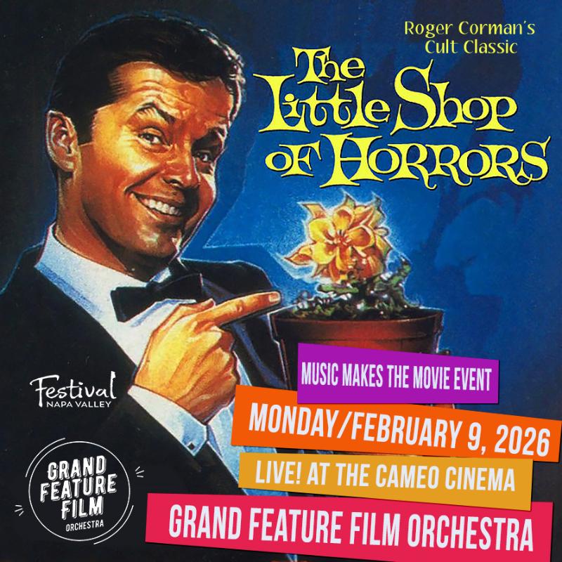 Celebrate Valentine’s week with what promises to be an offbeat, scene-stealing event created by Festival Napa Valley and the Cameo Cinema. Roger Corman’s 1960 cult classic, Little Shop of Horrors will be accompanied by a live performance of its iconic score featuring the Grand Feature Film Orchestra. The orchestra is a San Francisco Bay area nonprofit that performs original restored film scores live, synchronizing the performance with the on-screen action.
