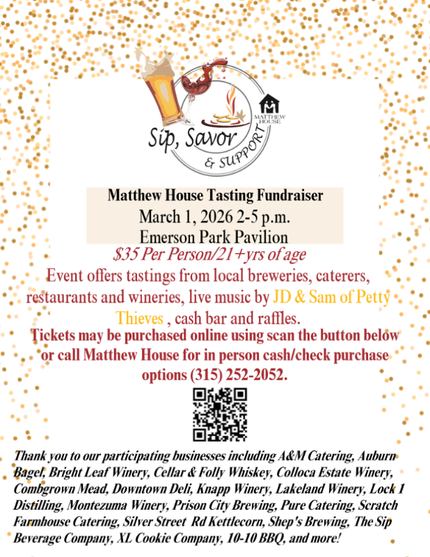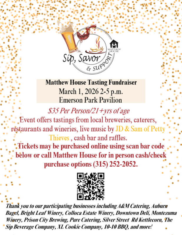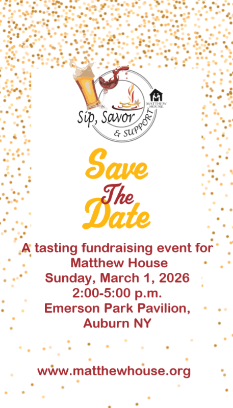 This year, Matthew House is hosting the 2nd Sip, Savor & Support fundraising event at The Emerson Park Pavilion. This event will include live music, raffles and tastings from several area restaurants, caterers, wineries and breweries.
