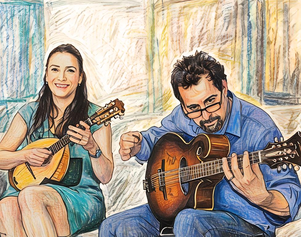 Two of the world's greatest mandolin players, Mike Marshall and Caterina Lichtenberg, play a concert of mandolin duets in a Woods Hole living room at 7:30 PM on Wednesday, October 22, 2025. Ticket holders will learn the exact location of the concert, and other mission critical information, by email about 24h before the show.