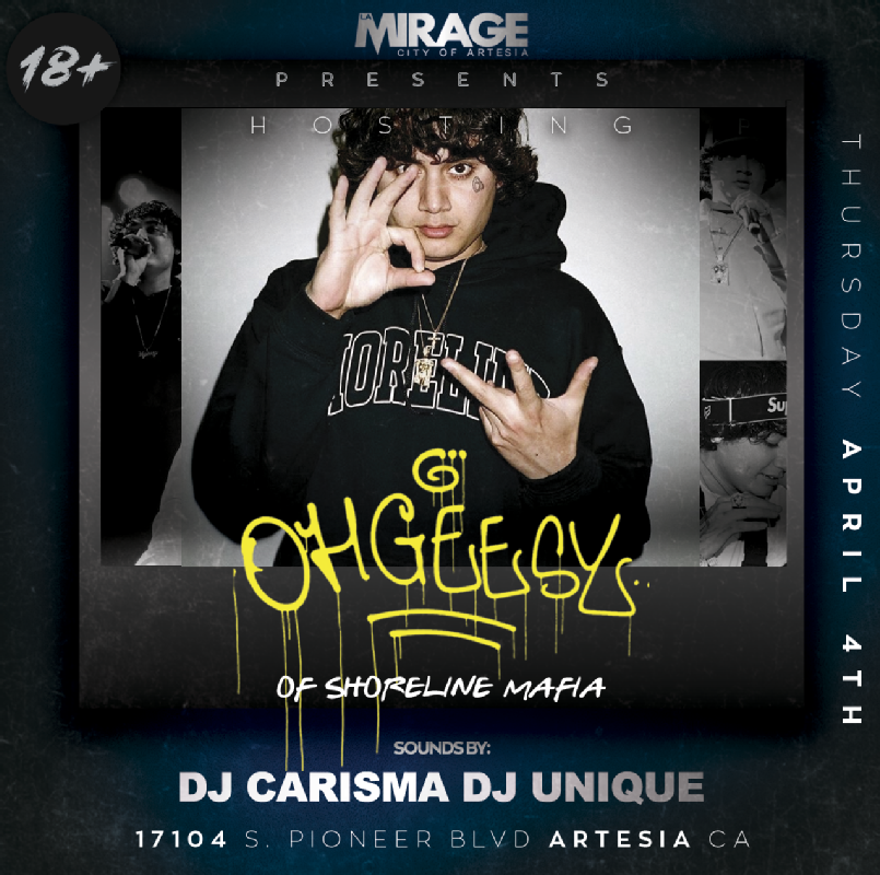 JOIN US THURSDAY APRIL 4th AT LA MIRAGE IN THE CITY OF ARTESIA FOR A VERY SPECIAL EVENT FEATURING SPECIAL GUEST OHGEESY OF SHORELINE MAFIA!