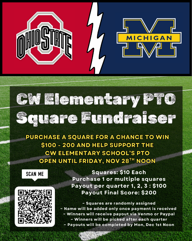 - ~ The completed grid will be posted on the CWLS PTO Website and Facebook page before the game kicks off on November 29th ( FACEBOOK ) ( WEBSITE )