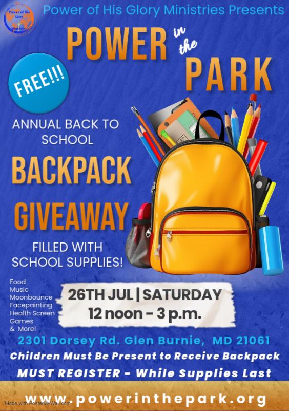Sign-up quickly, as tickets sell out fast! If we are sold out here, you can visit powerinthepark.org for another chance to attend and receive a backpack with school supplies.