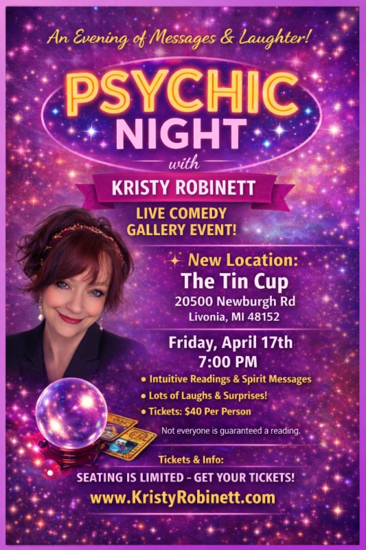 This 90 minute interactive event offers audience wide intuitive connections, spontaneous moments, and lighthearted storytelling, all delivered in Kristy’s signature compassionate and engaging style. While not everyone is guaranteed a personal reading, the evening is designed to be meaningful, entertaining, and memorable for everyone in the room.