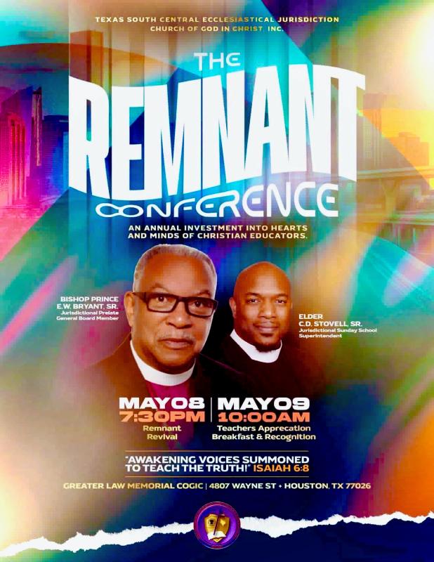 The Remnant Conference is a powerful gathering designed to encourage, equip, and honor those who are committed to teaching and living the Word of God. In this hour, God is calling His people higher, and this conference serves as a place of revivial, renewal, and divine alignment. This is more than a conference it's a call to the faithful, the focused, and the chosen. Come be refreshed, empowered, and strenthened as we rise together as the remnant God is raising for such a time as this. We also extend sincere gratitude to Bishop W.A. Jenkins Sr. for opening the doors and hosting the first annual gathering.
