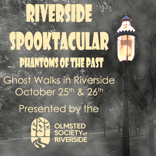 The Olmsted Society of Riverside's Riverside Spooktacular: Phantoms of the Past ghost walks are back again and even more spooktacular than before. This year, history comes back to life with some ghosts from Riverside's past. Join us for one of these special “spooky” walking tours—learn a bit about Riverside history with an extra helping of eerie occurrences, spooky stories and local lore.