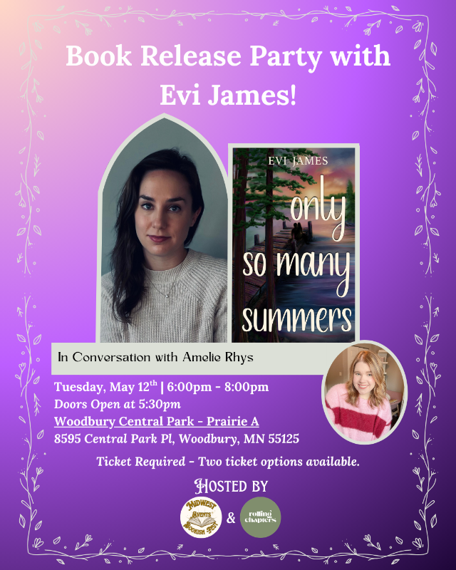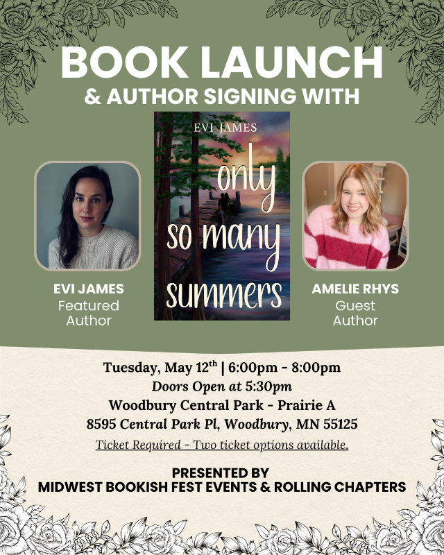 Join Midwest Bookish Fest Events & Rolling Chapters in celebrating Evi James' release of ONLY SO MANY SUMMERS! Evi will be joined by Amelie Rhys, author of AWAKE AT DAWN.