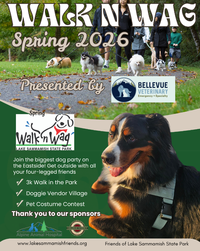 Friends of Lake Sammamish State Park (FLSSP) is excited to host our 9th Walk n Wag event – the largest dog party on the Eastside! This year will be a fun event for the whole family with a 3K walk, Doggie Village with vendors, meet adoptable doggies, pet costume contest, and more. We can't wait to see all the wonderful dogs and their friends and families at Spring Walk ‘n’ Wag!