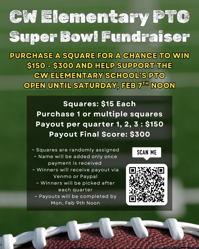 - ~ The completed grid will be posted on the CWLS PTO Website and Facebook page before the game kicks off on February 8th ( FACEBOOK ) ( WEBSITE )