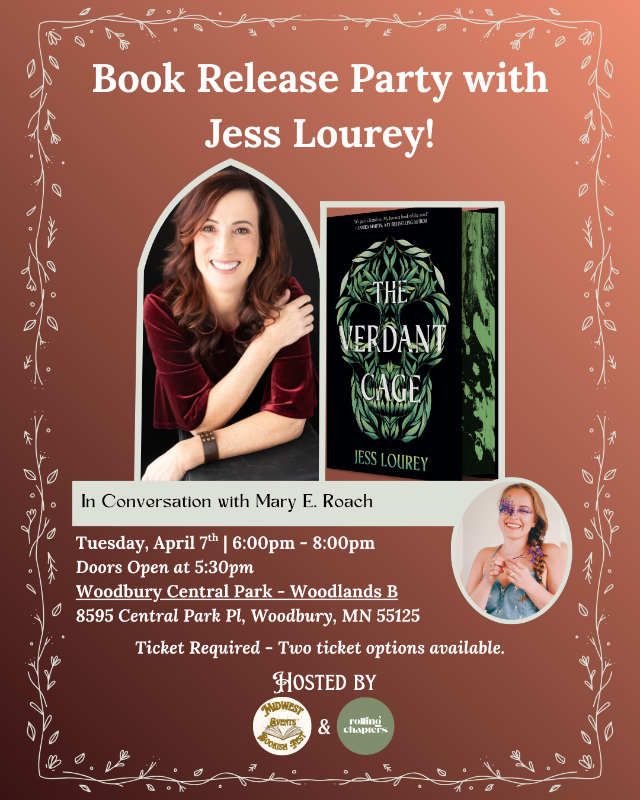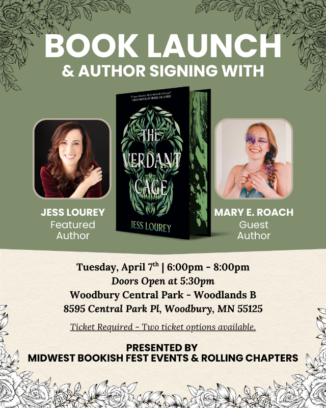 Join Midwest Bookish Fest Events & Rolling Chapters in celebrating Jess Lourey's release of THE VERDANT CAGE! Jess will be joined by Mary E. Roach/Márie Roche, author of SEVEN FOR A SECRET.